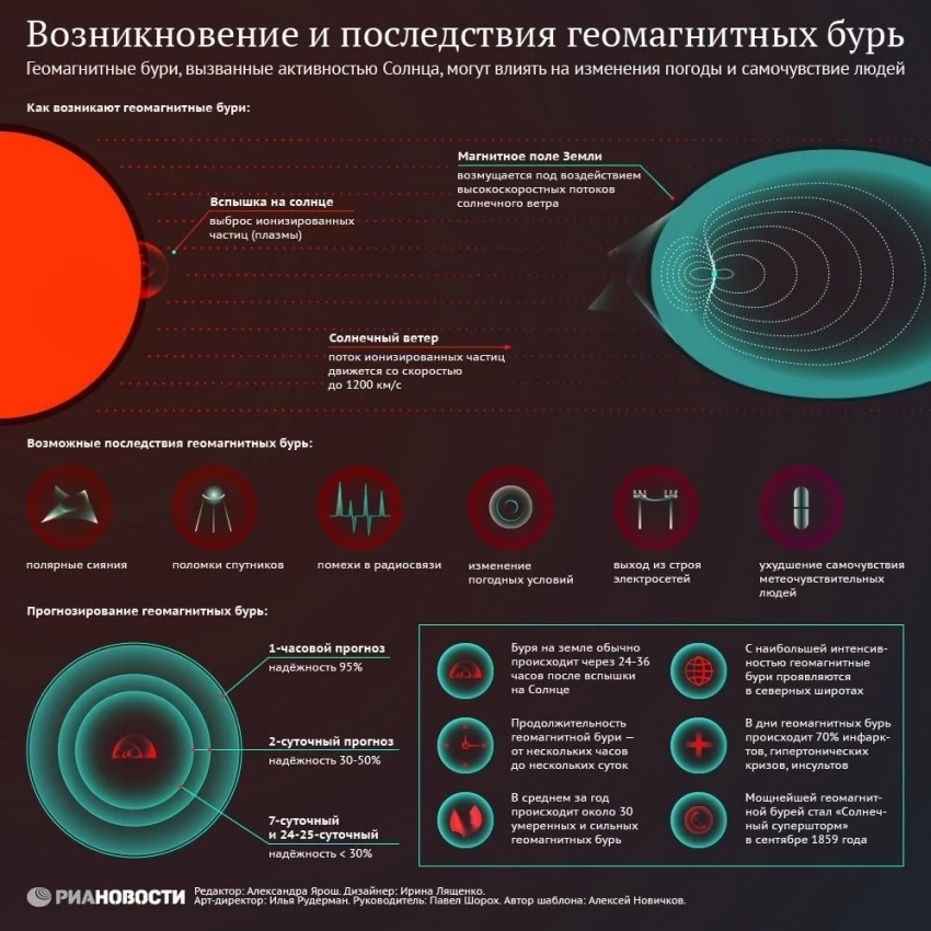 Механизм возникновения геомагнитных бурь (инфографика)