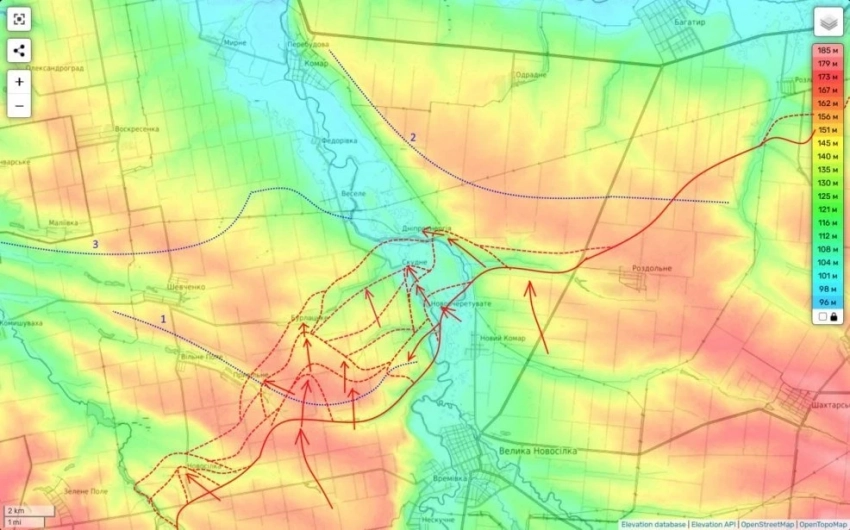 Все три села всего лишь промежуточные точки нашего наступления. Ключевые пункты, к которым мы идем, это н.п. Шевченко (чтобы выйти к нему нам надо брать Привольное. Бурлацкое и Вольное Поле) и Комар (для этого нам надо поочередно взять под контроль Днепроэнергию, Весёлое и Фёдоровку).