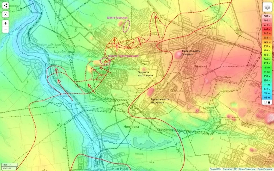 На Торецком направлении продолжаются бои внутри Торецка за шахту "Центральная". Пока полностью взять под контроль этот район мы не можем. Противник пытается контратаковать.
