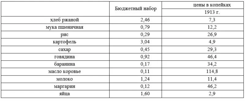 Наилучший обзор данных по бюджетам того времени приведен в работе «Заработная плата русских рабочих в конце XIX — начале XX в.» Вячеслава Волкова и указанной работе Кирьянова.