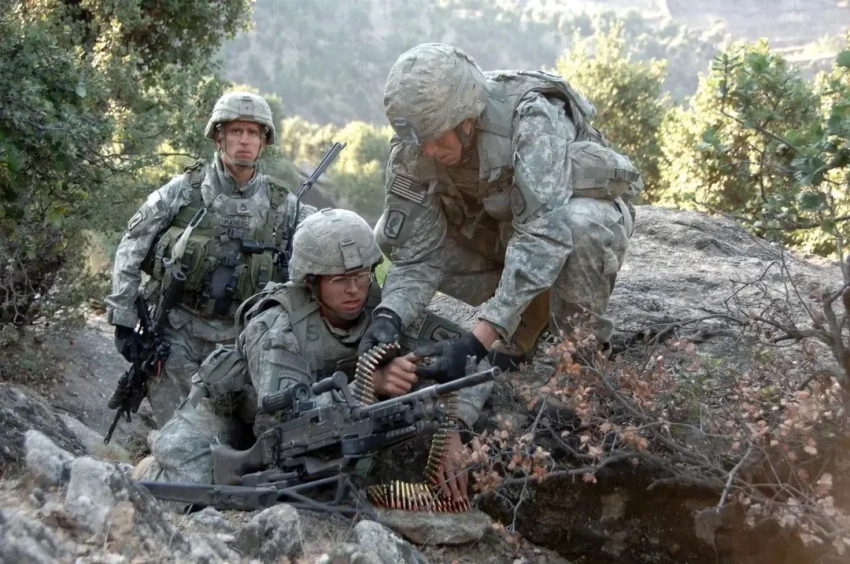 Десантники 503-го полка в горах провинции Кунар в 2007 году с пулемётом М240B. Именно бегая по горам Афганистана, американцы поняли, что куда-то не туда их развитие единых пулемётов завело.