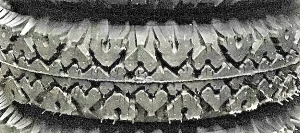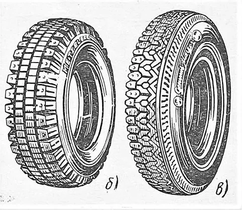 В 1905 г. фирма Континенталь в Ганновере начала выпуск «нескользящих» шин с металлическими заклёпками на протекторе — предтечи современных шипованных шин (рис. ниже):