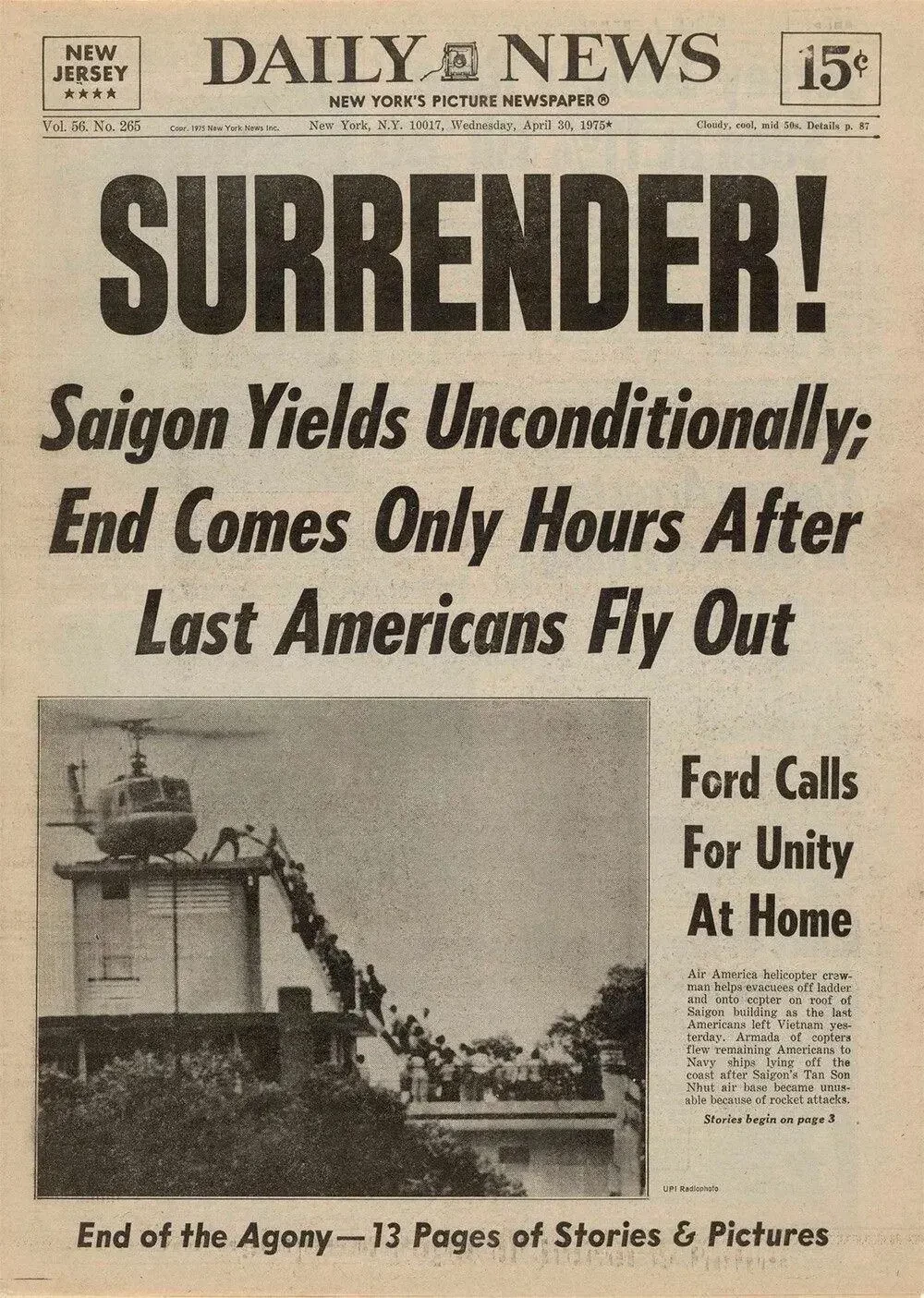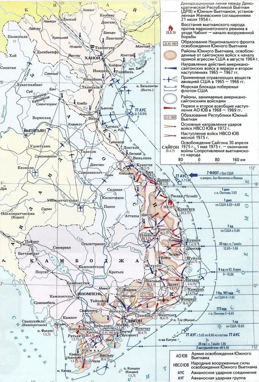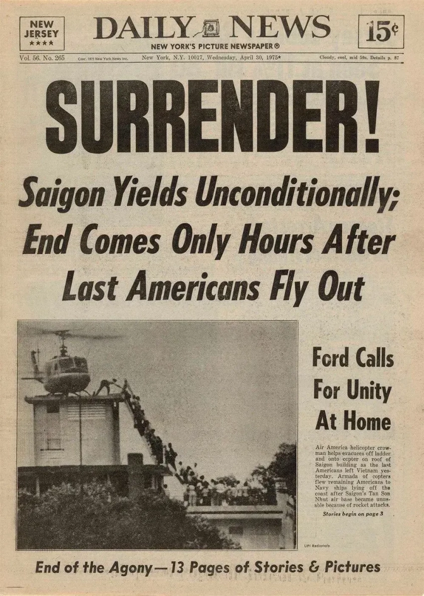 В эти дни Сайгон и крайний юг Южного Вьетнама, включая острова Фукуок (вблизи Камбоджи), отдалённые Кондао, Фукуи, Тхотю и Байдинь в Сиамском заливе – Южно-Китайском море, были взяты войсками ДРВ – Северного Вьетнама и южновьетнамских коммунистических партизан. Напомним, что последние были вооруженной силой Народного фронта освобождения Южного Вьетнама, созданного в 1963–64 гг.