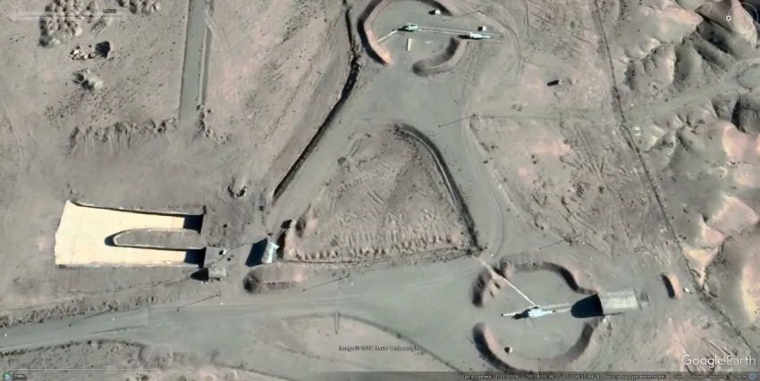 Спутниковый снимок Google Earth: позиция ЗРК С-200ВЭ в окрестностях авиабазы Бендер-Аббас.