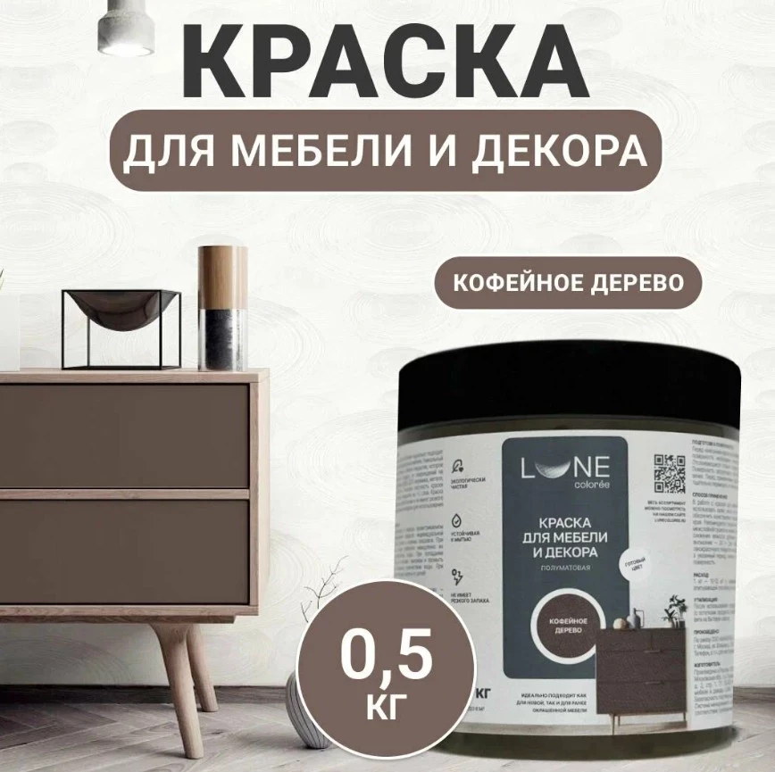 Краска для мебели Lune Coloree — это акриловая матовая основа, созданная для тех, кто ценит стойкость, эстетику и безопасность. Она легко ложится на дерево, металл, стекло, плитку и даже МДФ, позволяя обновить интерьер без лишних усилий. Устойчивость к истиранию, отсутствие запаха и водоотталкивающее покрытие делают её отличным выбором в «краска для мебели рейтинг лучших», особенно для кухни, ванной или детской. Богатая палитра оттенков завершает образ идеального ремонта.