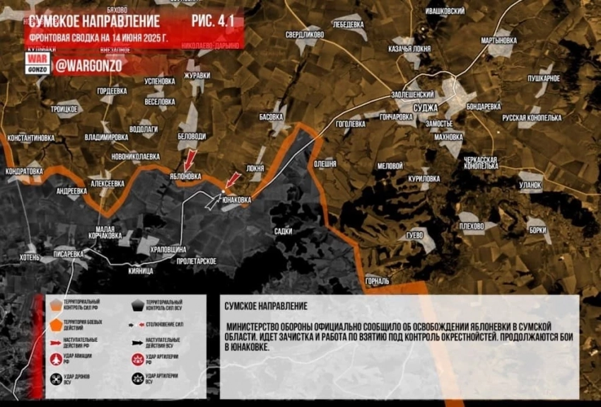 Карта боевых действий на Украине. Последние данные на 14.06.2025