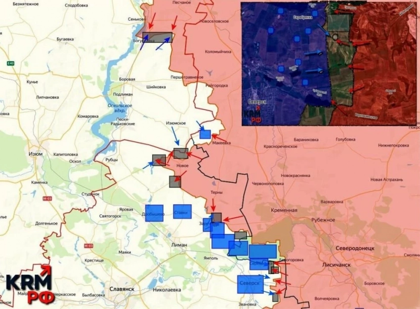 На Краснолиманском направлении ВС РФ отбили у ВСУ крупный укрепрайон на севере от Редкодуба, в районе села Глущенково. За неделю наши здесь продвинулись примерно на километр. В районе Грековки зафиксировано продвижение ВС РФ, ведётся выравнивание флангов вдоль балки Галичевка.