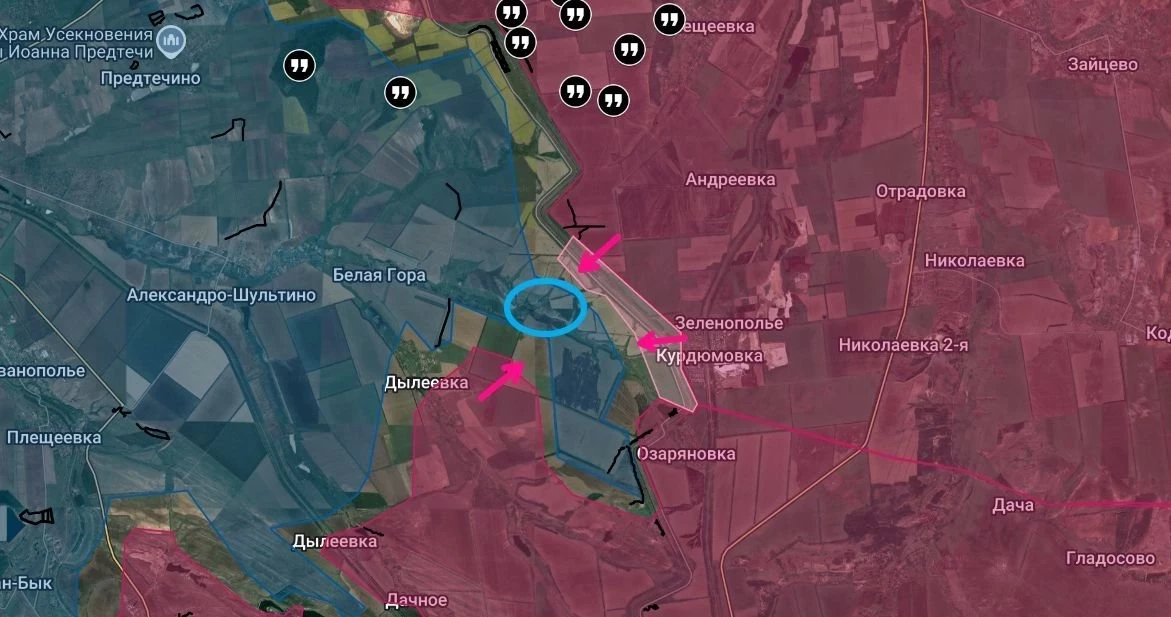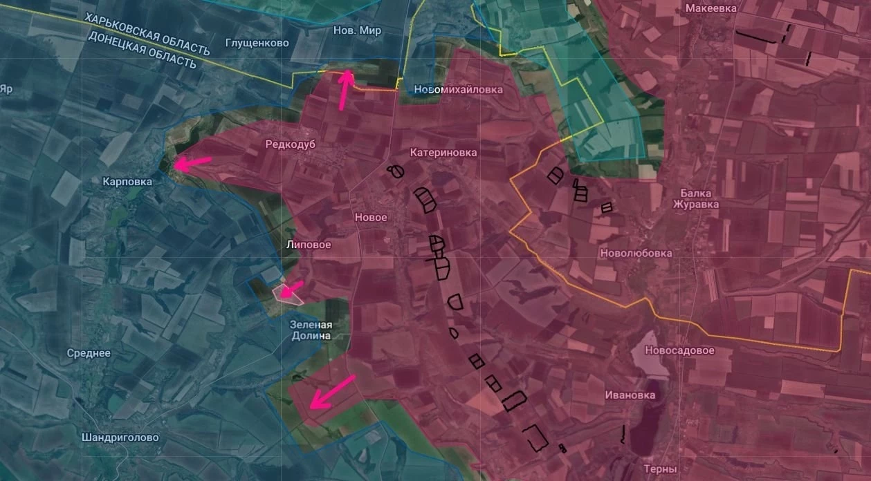 На Лиманском направлении российские бойцы не снижают темпы наступления. В частности, в их первоочередную задачу, как указывают военные блогеры, входит окружение населённого пункта Зелёная Долина и последующий выход к Новому Миру.