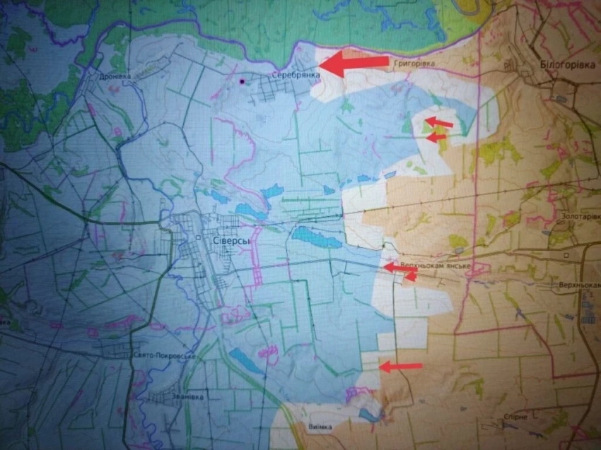 В последние дни подразделения частей 3-й А продолжают наступление на участке Григоровка - Ивано-Дарьевка и смогли продвинуться западнее Григоровки на ближние подступы к Серебрянке (до 500 м до неё, между р. Северский Донец и дорогой) и севернее Ивано-Дарьевки на участке до 1,5 х 1,5 км.