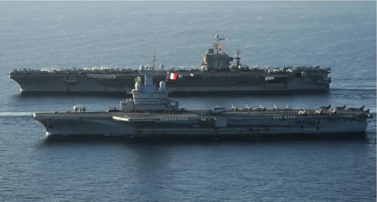 Французский авианосец «Шарль де Голль» и американский авианосец класса «Нимиц» меряются... палубами