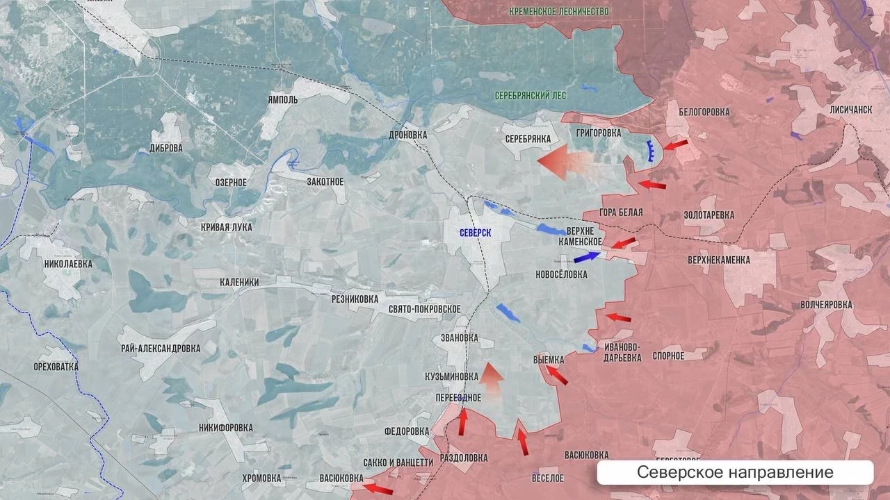 На Северском направлении, в районе Соледара, российские подразделения продвигаются к Фёдоровке, а севернее расширяют зону контроля в центральной части Верхнекаменского.