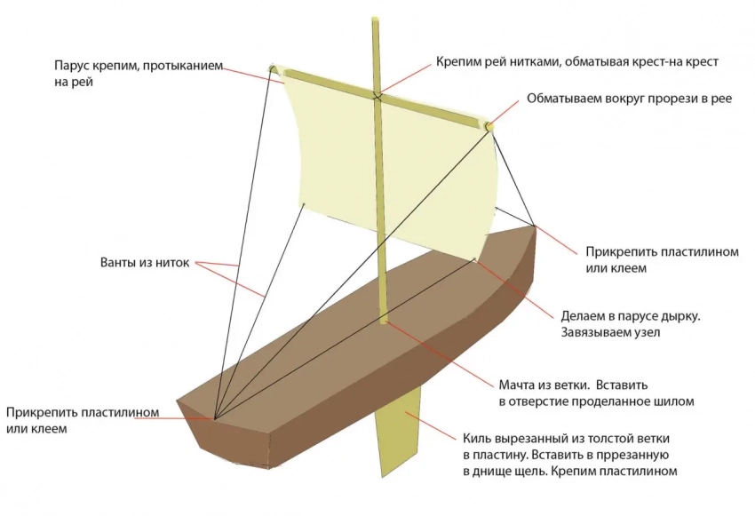 Затем я построил из пластилина броненосец «Потемкин». Для обеспечения остойчивости на дно положил кусочек свинца. Сделал несколько поперечных переборок. Мачты и реи выстрогал из веток. Растяжки – из ниток. Летом, натаскав для полива огорода в большое корыто воды, отправлял корабль в плавание. А как красиво он тонул, если сделать пробоину в борту…