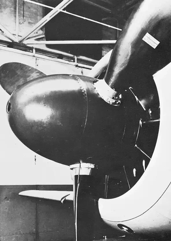 Bf 109 V21, оснащенный 14-цилиндровым сдвоенным звездообразным двигателем Pratt & Whitney R-1830 "Twin Wasp". Это единственная известная фотография, на которой полностью виден Bf 109 со звездообразным двигателем. Капот двигателя P&W идеально гладкий – у него отсутствуют характерные для BMW 801 боковые выпуклости (из-за внутренних впускных валов).