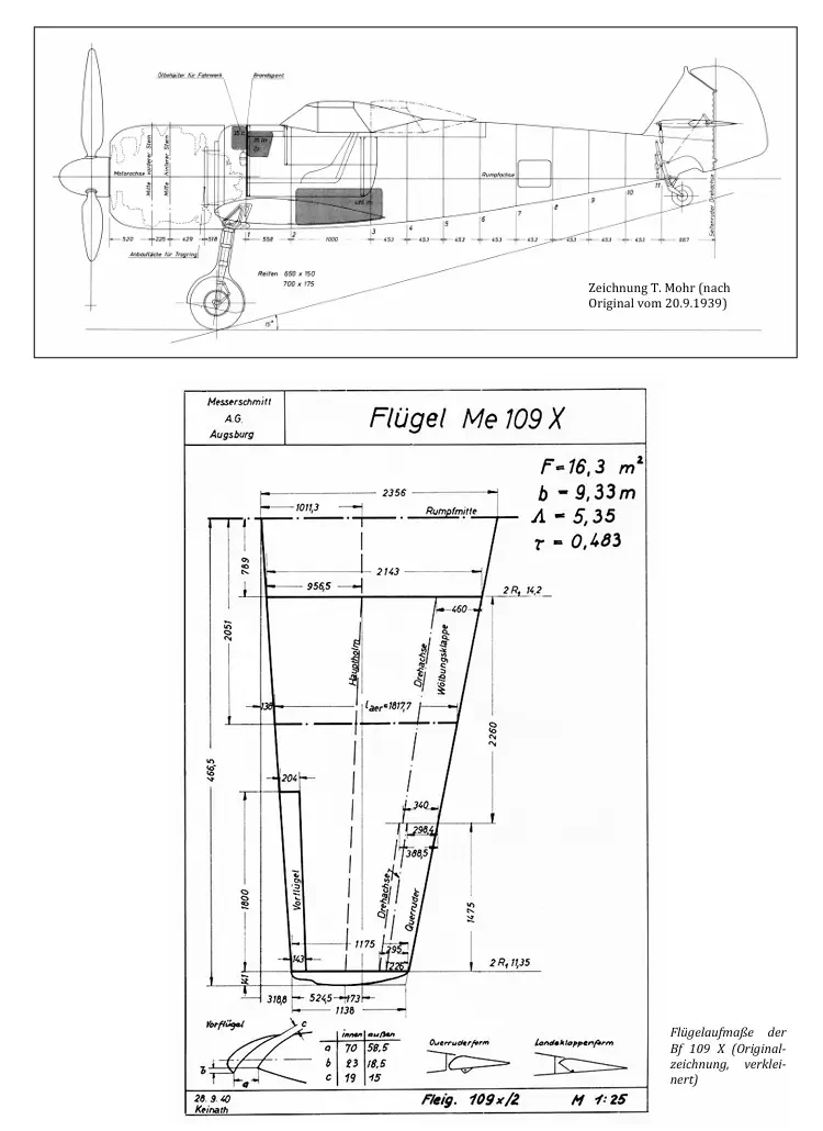 Не так давно фирма Messerschmitt-Bölkow-Blohm GmbH (MBB) опубликовала подлинные чертежи и схемы Bf 109X, которые позволяют сделать точные выводы о фактическом внешнем виде загадочного 109 X.