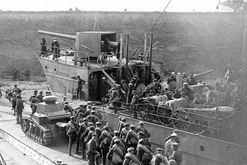 До Первой мировой войны созданием специализированных десантных кораблей никто особо не заморачивался: в Крымскую войну для высадки лошадей и пушек англичане использовали паромы из связанных бочек с дощатым настилом, в 1878 году построили баржи с аппарелью, но без двигателя. Но чаще всего пехоту грузили на обычные торговые суда (или военные корабли, пехоте — ей без разницы), везли куда следует и высаживали при помощи шлюпок и баркасов. Именно так высадились японцы на Ляодунском полуострове 5-12 мая 1904 года. Но тут сразу стоит обратить внимание на сроки: японцы высадили 50 тысяч человек с 216 орудиями и тысячами лошадей за восемь дней (а грузы ещё несколько недель выгружались в захваченном порту Дальний). Никто не мог гарантировать, что противники России в следующей войне будут столь же благодушны, как командир 4-й дивизии генерал-майор Александр Фок и контр-адмирал Вильгельм Витгефт, позволившие японцам провернуть подобную операцию. И дадут русскому флоту неделю с лишним на высадку! В общем, для десанта на Босфор (а именно черноморские проливы были объявлены целью России в Первой мировой войне) стоило построить что-то более подходящее.