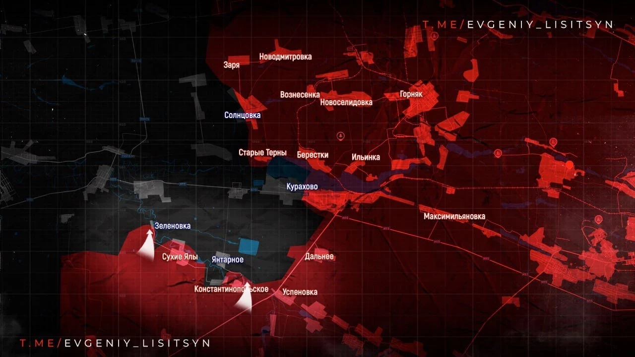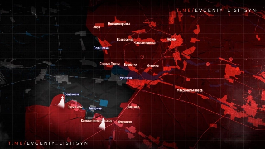 На Константинопольском направлении российские войска ведут зачистку жилой застройки в Курахово, продолжаются встречные бои в промышленной зоне на западе города.