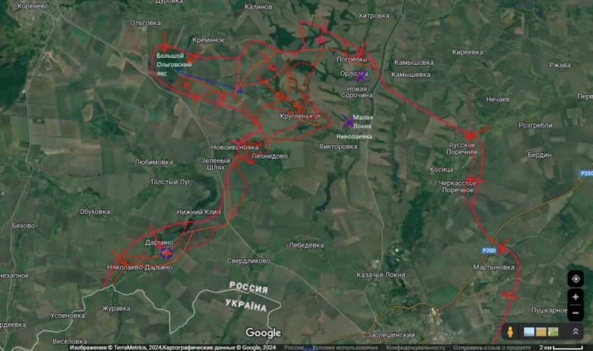 Карта боевых действий в Курской области от Юрия Подоляки на 23.12.2024