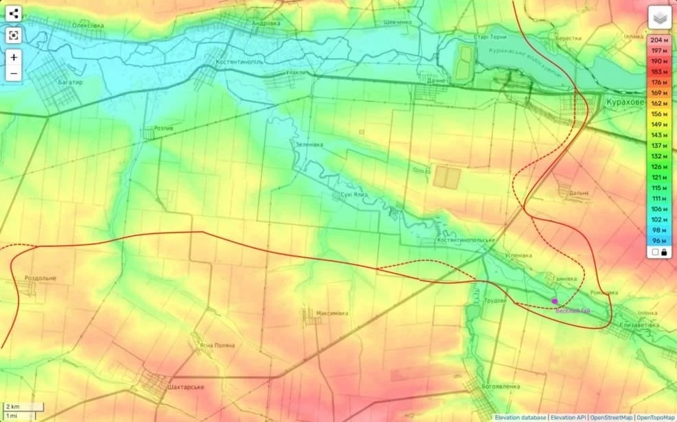 Одновременно с этим продолжается его обтекание с востока и севера. Вчера полностью было взято под контроль Раздольное и упорные бои идут за опорник западнее этого села, находящийся на трассе Большая Новосёлка-Богатырь.