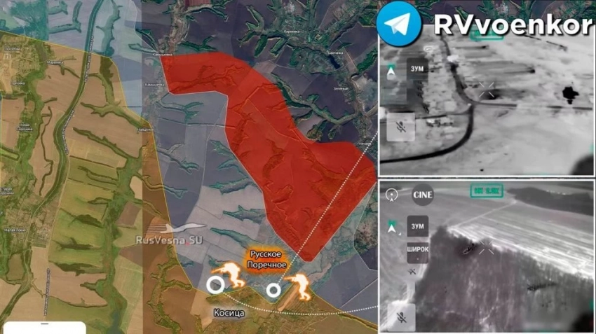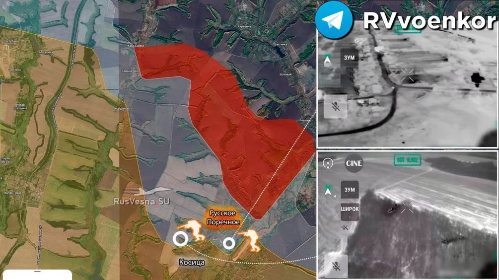 Кроме того, армия России завершает освобождение Русского Поречного, зачищая последние окраины. Противник фиксирует присутствие российских штурмовиков в центральной части Русского Поречного и кадры боестолкновений в южной части последнего, а также в районе прилегающих урочищ.