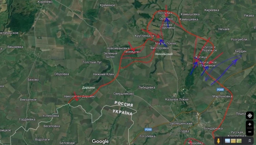 На данный момент основная линия фронта севернее Суджи проходит вдоль реки Малая Локня. Российские силы удерживают плацдармы за рекой, в том числе у населенного пункта Погребки, а также южнее возле села Русское Поречное.