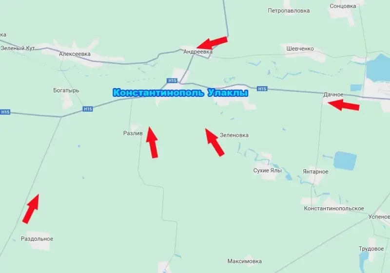 Ранее украинские ресурсы подтвердили данные о том, что российские войска вошли и закрепились в Андреевке, что в непосредственной близости от Константинополя – чуть севернее. Одновременно с этим российские подразделения совершают охват Константинополя с юга и юго-запада. Причём с юго-западного направления продвижение ВС РФ, по утверждению самого противника, ускорилось после взятия армией России под контроль Великой Новосёлки.