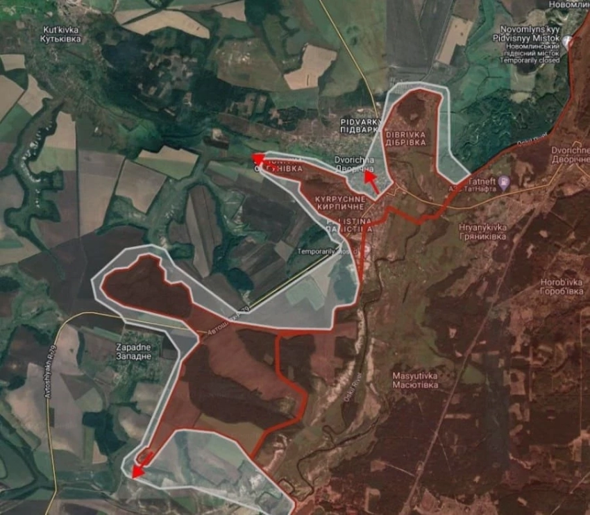 На Купянско-Лиманском направлении российские войска продвинулись в западной части Двуречная на глубину до 3 км, под контроль перешел весь населенный пункт, давят севернее и южнее р. Нижняя Двуречная.