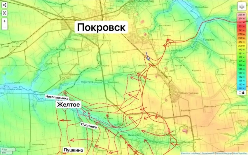 «Если посмотреть на карту и провести линию, то мы уже здесь зашли западнее за меридиан западной части Покровска», - отмечает военный эксперт Юрий Подоляка в своём Telegram-канале.
