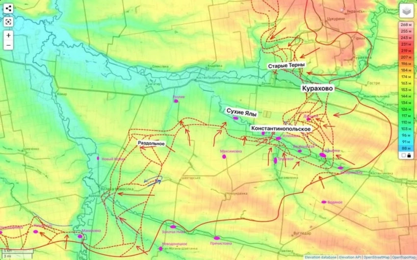 На юге от Курахово продолжаются бои в дельте реки Сухие Ялы. Сейчас основное столкновение зафиксировано близ населенного пункта Константинопольское, кроме того идет подготовка удара в направление село Разлив.
