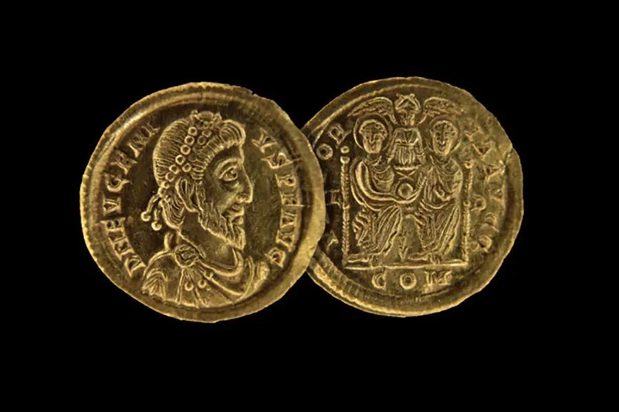 Команда раскопала 141 золотую монету, отчеканенную между 364 и 408 годами нашей эры, в Хольцтуме, деревне на севере Люксембурга. На монетах изображены портреты восьми императоров, но на трех монетах изображен неожиданный правитель: Евгений, нелегитимный император Западной Римской империи, правивший всего два года (с 392 по 394 год).
