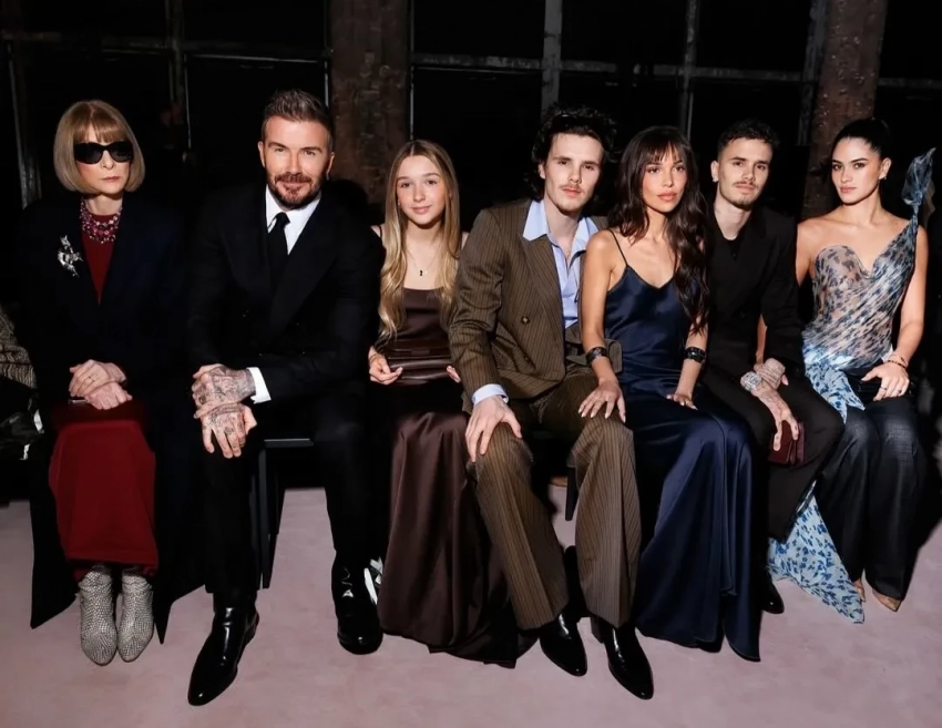 Неделя моды в Париже: Дэвид и Виктория Бекхэм с дочерью Харпер, Круз и Ромео Бекхэм с возлюбленными посетили показ Victoria Beckham