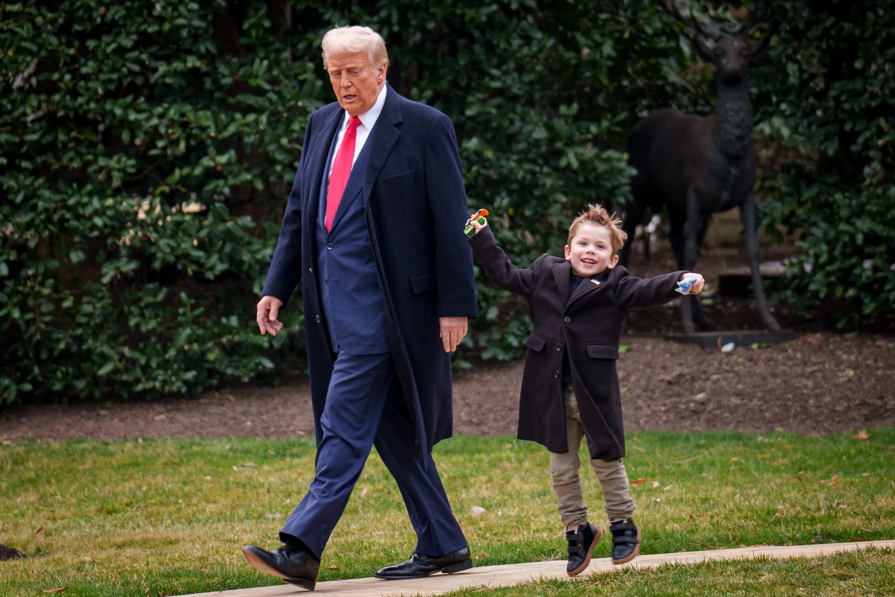 78-летнего Трампа заметили в компании мальчика во время перелета из президентской резиденции в Вашингтоне в Мар-а-Лаго (Флорида), где политик планирует отдохнуть в выходные. Репортеры засняли их, когда они направлялись к борту вертолета Marine Force One: Экс был, как обычно, очень веселым и активным. Трамп помог ребенку подняться по трапу, а после к ним присоединился Илон Маск.
