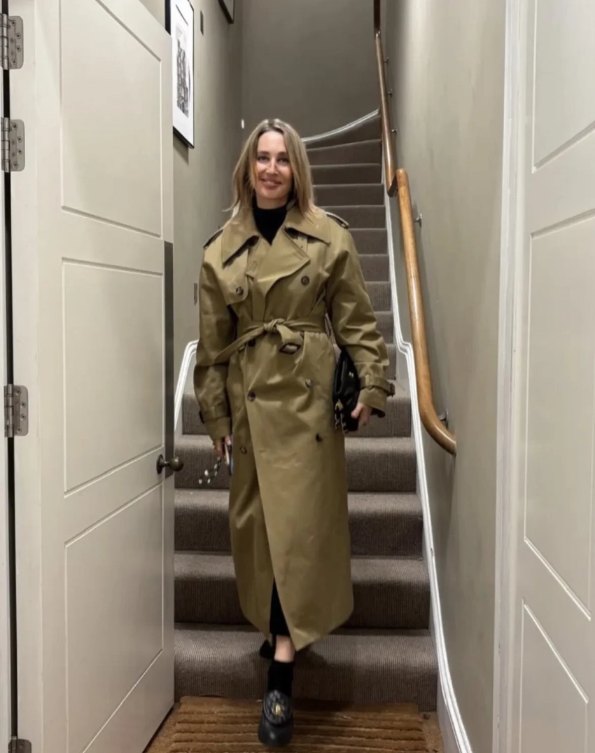 Оксана Бондаренко позировала в фойе в бежевом тренче и написала в соцсетях, что осталась довольна постановкой, билеты на которую раскуплены вплоть до последнего показа 5 апреля.
