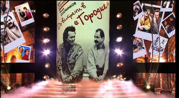 В конце выступления на экране сцены появились фотографии Стоянова и Олейникова той поры, заставка «Городка».