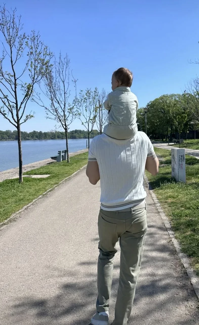 Милош Бикович показал в инстаграме* редкие фото годовалого сына. На снимках он прогуливается с ребёнком по набережной. Судя по меткам, кадры были сделаны в родном городе 37-летнего актёра — Белграде.