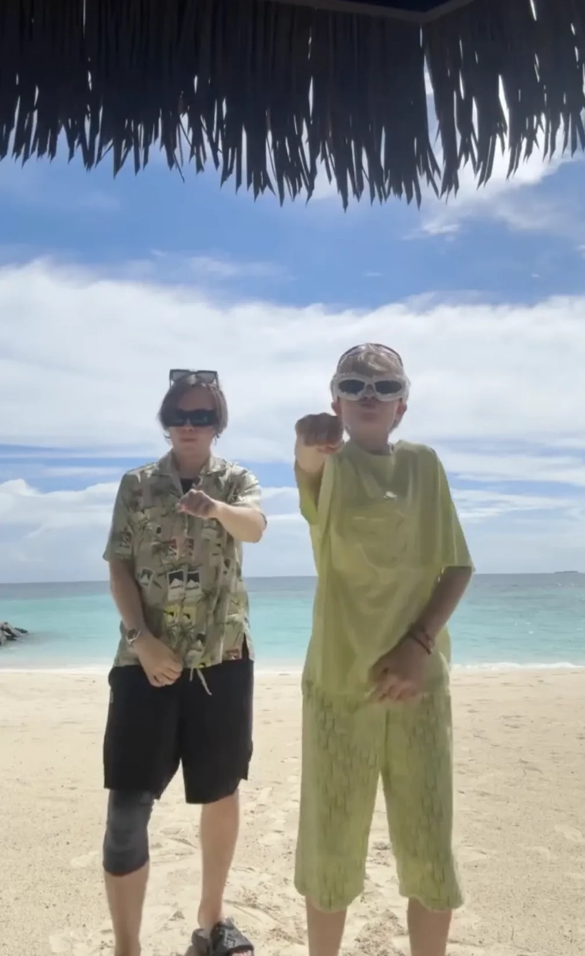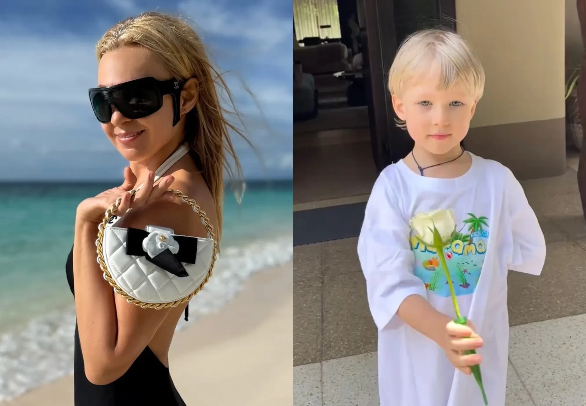На снимках 50-летняя Рудковская позирует на пляже в тотал-луке Chanel: в чёрном купальнике, дополнив образ сумкой и очками, а младший сын пары Арсений проводит подписчикам Яны рум-тур по своей вилле (его звёздные родители поселились по соседству). Тем временем их старший сын Александр (Гном Гномыч) танцует на фоне океана вместе с 22-летним братом Николаем.