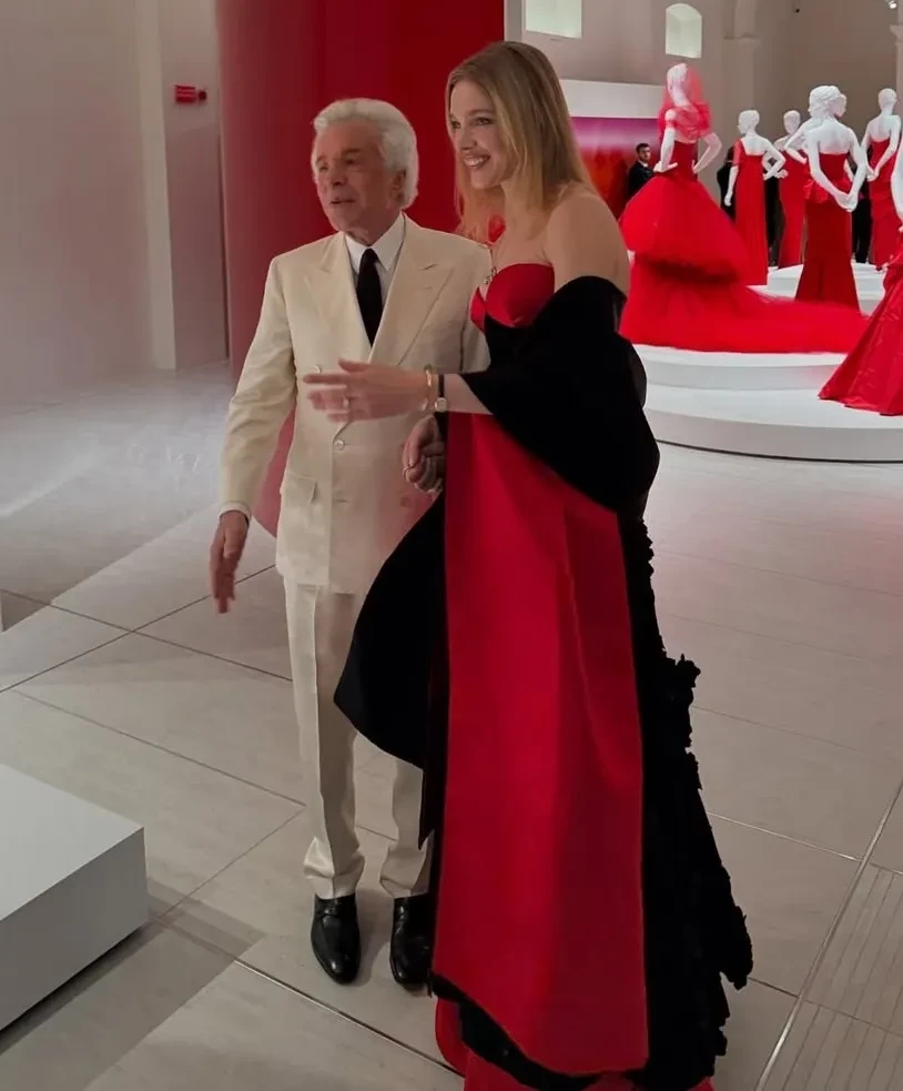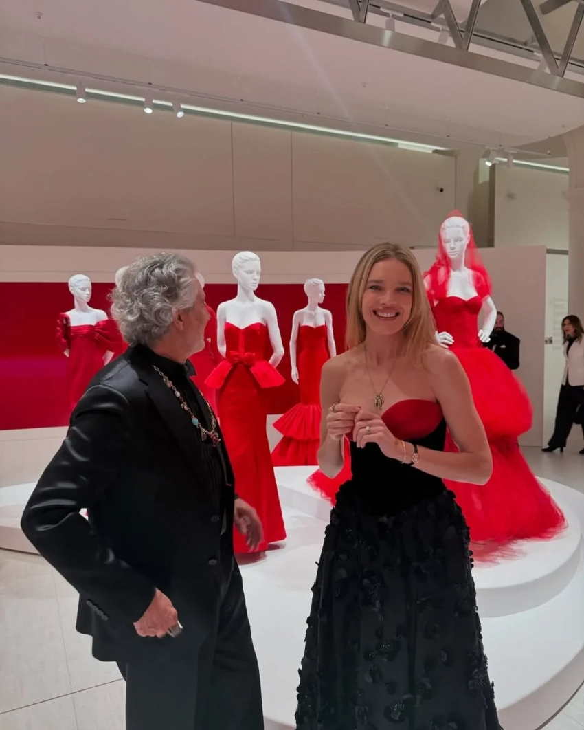 Карлос Соуза и Наталья ВодяноваЭкспозиция посвящена красному цвету, на ней представлены 30 предметов искусства и 50 легендарных моделей Valentino, создававшихся на протяжении пяти десятилетий. Также выставку посетила 59-летняя актриса Элизабет Хёрли с сыном Дэмианом.