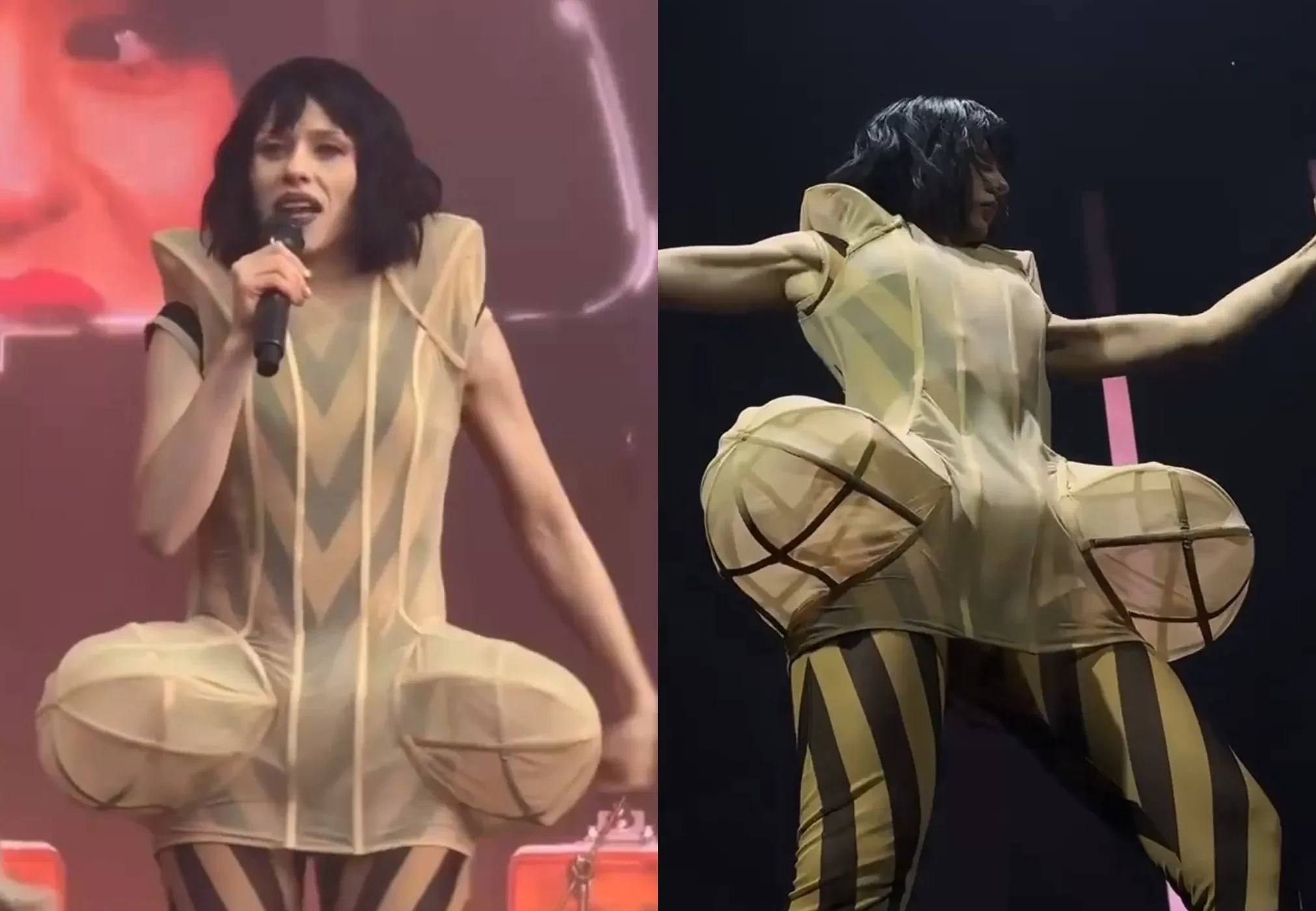 Скандал разгорелся после того, как поклонники начали выкладывать видеоролики с концерта. 37-летняя певица появилась на нём в полупрозрачном платье бренда ako.sixth странной конструкции. Наряд у многих вызвал непристойные ассоциации, из-за этого певицу начали массово критиковать: "Пора отменять, как Глюкозу", "Костюм убожество, кто её в это одел?", "Зачем на это ходят, ещё и с детьми". Сама она пока никак не отреагировала на критику.