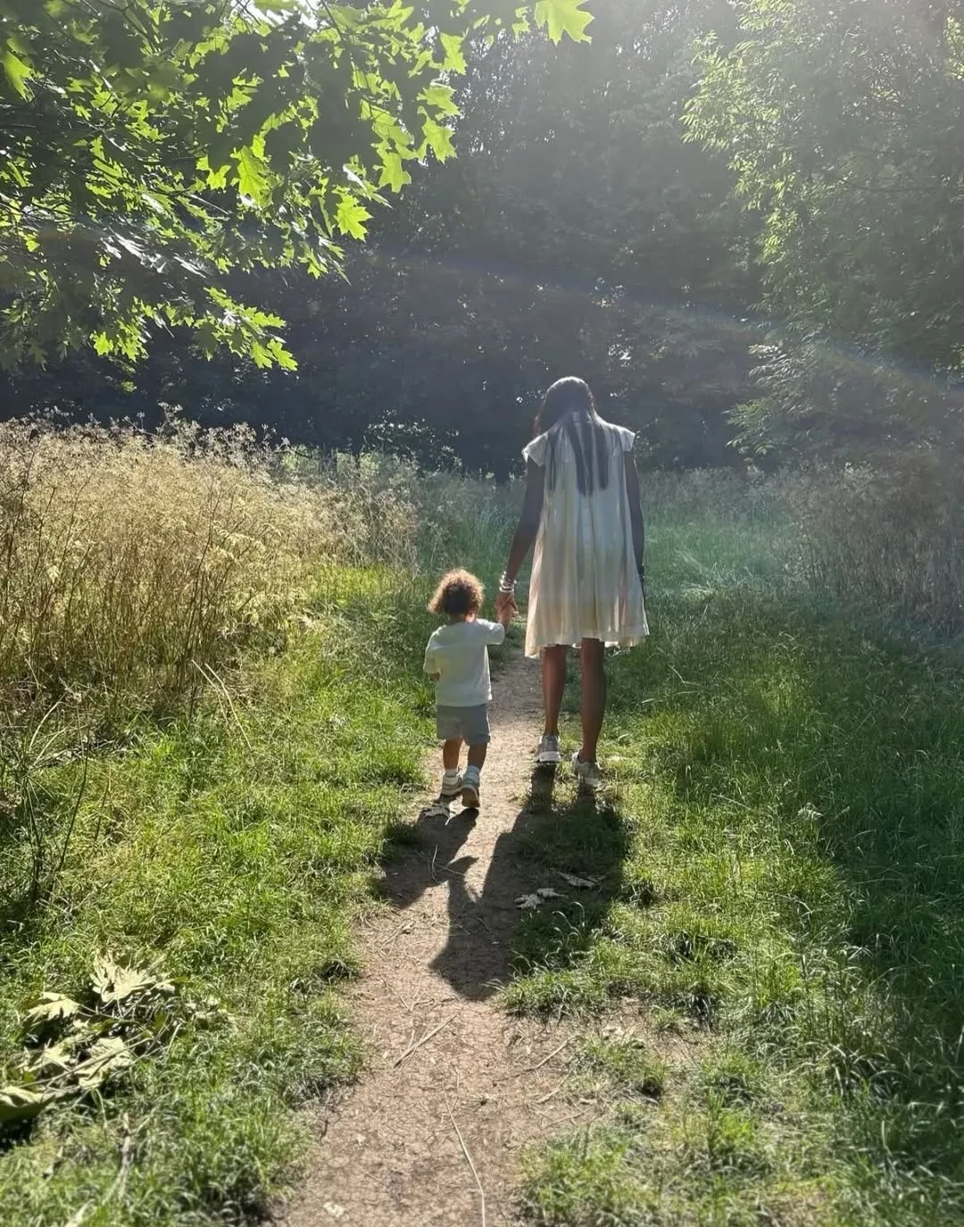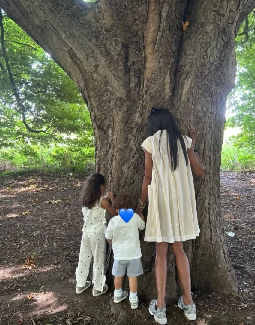 "В лесу, обнимая деревья — в окружении моих сердец, моих богатств, моих детей", — подписала снимки Наоми и по традиции не стала показывать лица детей.