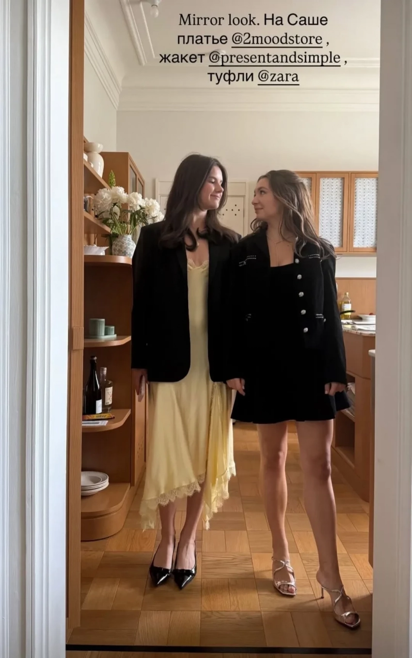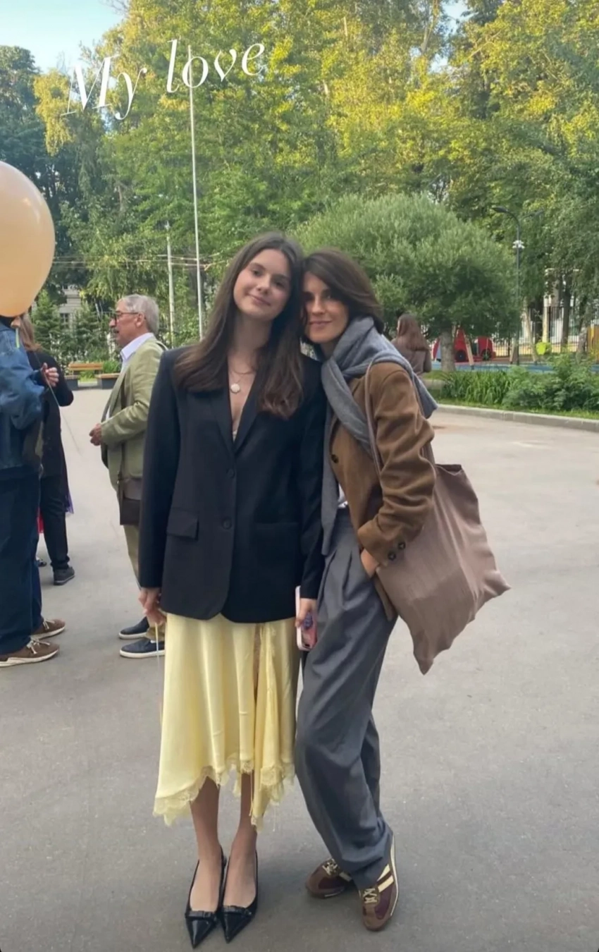 Фото Ксении СоловьёвойЗато Ксения также поделилась фотографиями с выпускного своей дочери Александры, на который девушка пришла в платье 2Mood, жакете Present & Simple и туфлях Zara.