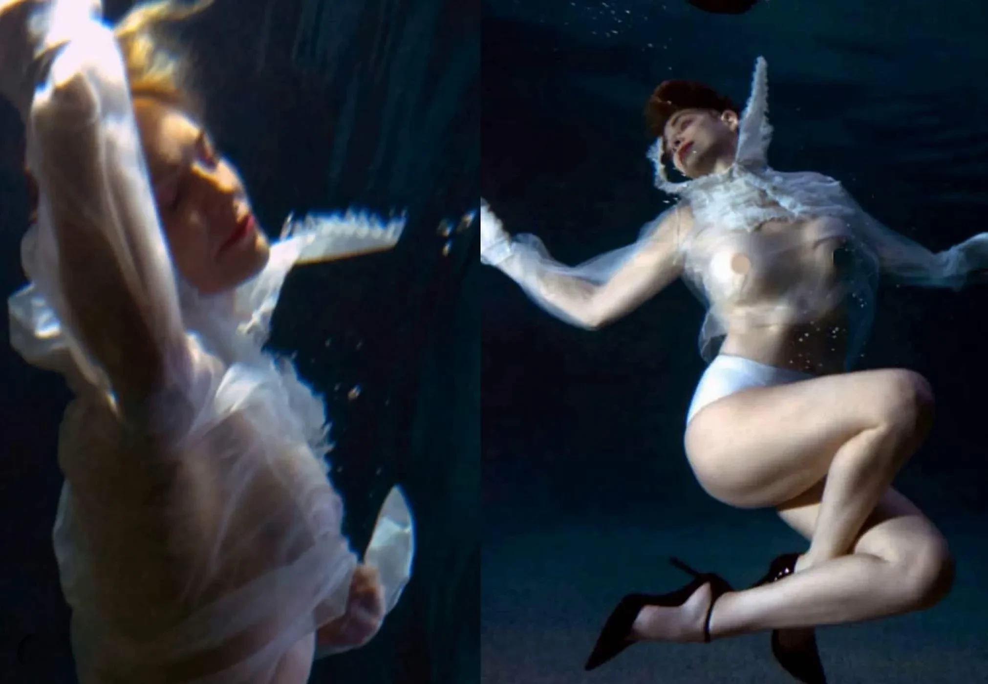 67-летняя Шэрон Стоун снялась в прозрачной блузке под водой