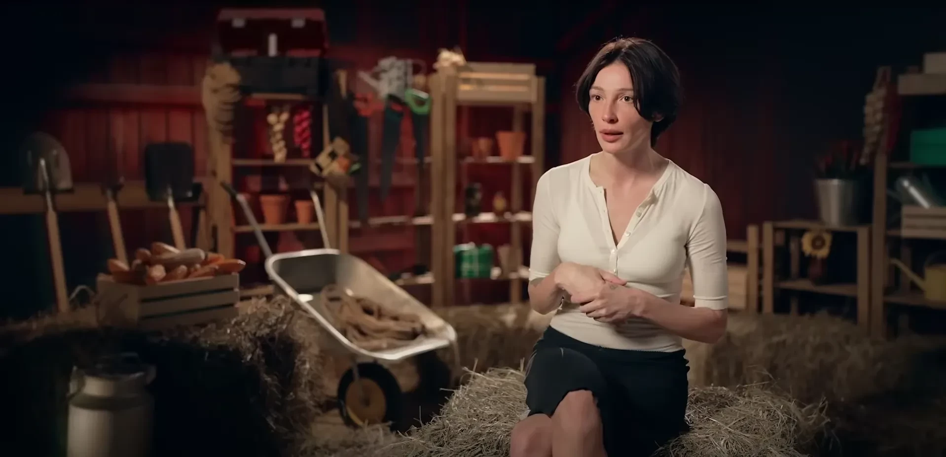 Серия началась с того, что Настя Ивлеева училась управлять трактором. Хоть Ивлеевой было трудно и она даже заплакала из-за того, что не смогла разобраться с передачами, вспахать поле ей всё же удалось. Филипп Бегак признался, что впервые за всё время отношений он "довёл жену до слёз".