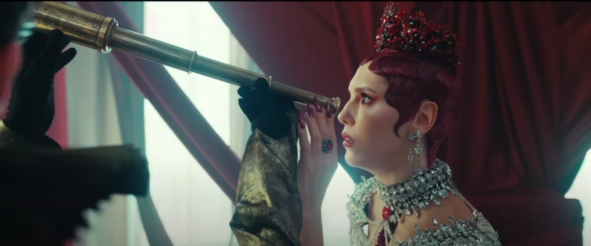 В новом трейлере показали больше кадров с Паулиной Андреевой в роли Чёрной Королевы, а также Милошем Биковичем в роли Шляпника. Кроме того, в трейлере появился Сергей Бурунов, исполнивший роль Гусеницы.