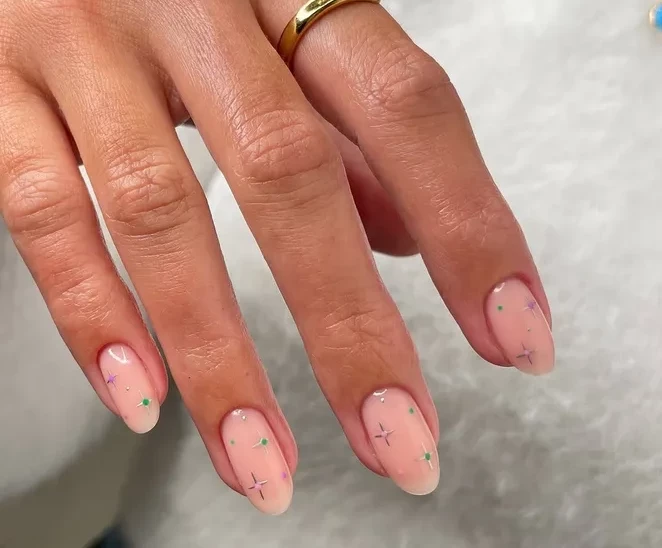 Хочешь вдохнуть в свой маникюр весеннее настроение? Попробуй дизайн с молочной основой и пастельными звездами. Легкие, как дыхание, маленькие звездочки разных цветов создадут ощущение волшебства и легкости. Такой маникюр будет смотреться свежо и мило, при этом оставаясь сдержанным и не навязчивым. Это отличный выбор для тех, кто предпочитает уютный, но выразительный стиль.
